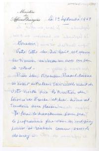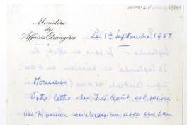 Hoja con membrete : Ministére des Affaires Etrangéres.