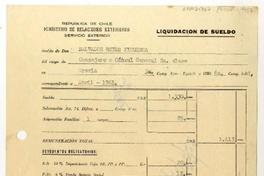 Liquidaciones de sueldo enviadas a Salvador Reyes por el Ministerio de Relaciones Exteriores (Chile), durante el periodo de Encargado de Negocios en Grecia y Turquía y como Cónsul General de Chile en Francia.