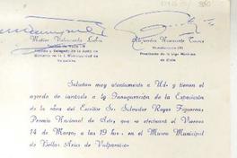 Adjunto : 3 invitaciones a la inauguración de la Exposición de la obra de salvador Reyes en el Museo Municipal de Bellas Artes de Valparaiso.