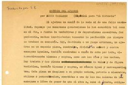 Artículo de Roger Caillois, traducido del francés al español por Salvador Reyes para ser publicado en un especial en "El Mercurio".