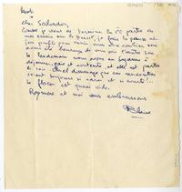 París, Francia [a] Salvador Reyes Cartas, Entre 1956 y 1959, [manuscrito] Blaise Cendrars.