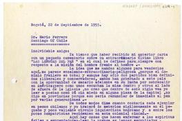 Bogotá, Colombia [a] Mario Ferrero Carta, 1955 septiembre 22, [manuscrito] Enrique Arancibia Figueroa.