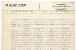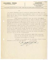 Comenta que su amigo José María Romero necesita un corresponsal en Chile para su agencia de Prensa "Colombia Press".