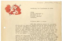 Santiago, Chile [a] Sergio Contardo Egaña. Carta, 1948 septiembre 3, [manuscrito] Mario Ferrero.