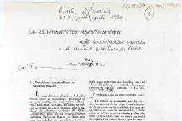 El sentimiento nacionalista de Salvador Reyes [manuscrito] / Óscar Espinosa Moraga. 9 hojas ; 33 x 21,52 cm. .