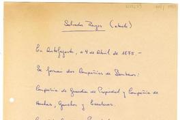 Transcripción de párrafos donde se mencionan a familiares de Salvador Reyes, aparecido en "Narraciones históricas de Antofagasta" de Isaac Arce.