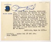 Tarjetas de invitaciones, saludos y agradecimientos a Suzanne Bertrand en torno a homenajes a Salvador Reyes.