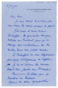 Cartas a Salvador Reyes, donde menciona algunos viajes y espera que se reencuentren en Paris.