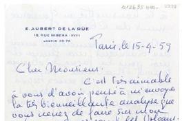 Paris, Francia [a] Salvador Reyes Cartas, Entre 1959 y 1964, [manuscrito] / Edgar Aubert de la Rüe. 6 cartas (6 hojas) ; 28 x 21 cm. .
