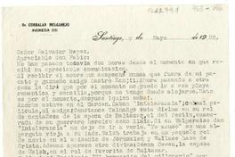 Santiago, Chile [a] Salvador Reyes, Valparaíso Carta, Entre el 7 de mayo y el 20 de junio de 1920, [manuscrito] Ricardo Corbalán Trumbull.