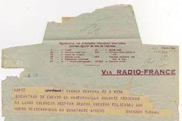 Telegramas con membretes : "Via Radio-France", "Via Eastern" y "Via Commercial".