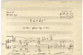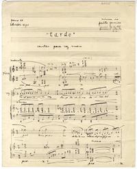 Tarde : Cantar para voz media [manuscrito] Salvador Reyes ; música de Pablo Garrido.