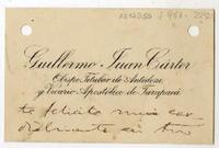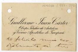 2 Tarjetas de saludos : 6 de diciembre de 1900, Iquique, Chile de Guillermo Juan Carter (Obispo de Tarapacá) -- 3 de mayo de 1911, Antofagasta, Chile de Salvador Reyes.