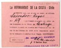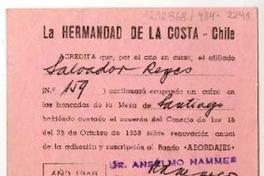 Octálogo de la Hermandad de la Costa (Santiago, 7 de noviembre de 1951) -- Tarjeta de la Hermandad de la Costa, que acredita afiliación N°159 de Salvador Reyes y colilla de pago de treinta escudos (Santiago, 1968) -- Tarjeta del Club de Yates de Taltal, que acredita a Salvador Reyes como socio vitalicio -- Tarjeta de "Les amis de l'aventure", donde certifica a Salvador Reyes como miembro activo (Francia, 1945).