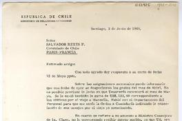 Materias: Correspondencia - Manuscritos chilenos - Ministerio de Relaciones Exteriores - Reyes, Salvador - Autores chilenos