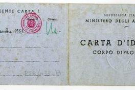 Carné de identificación para el cuerpo diplomático, emitido a Salvador Reyes, por el Ministerio de Relaciones Exteriores de Italia.