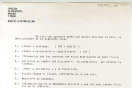 Comunica procedimientos, en caso que personas quieran derribar el muro del museo, donde se encuentra la Colección de Salvador Reyes.