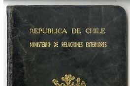 Santiago, Chile [emitido a] Suzanne Bertrand Pasaporte diplomático, 12 de agosto de 1960, [manuscrito] Ministerio de Relaciones Exteriores, Chile.
