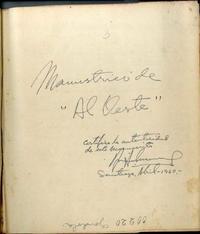 Al oeste [manuscrito] / Benjamín Subercaseaux. 166 hojas ; 21 x 19 cm. .