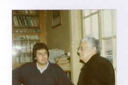 Miguel Arteche junto a un funcionario de Biblioteca Nacional, en un depósito satélite de San Isidro.