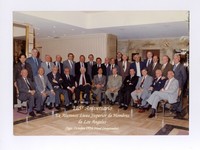 Miguel Arteche junto a ex alumnos, en el 125° Aniversario del Liceo Superior de Hombres de Los Ángeles, reunión realizada en el Hotel Conquistador de Santiago.