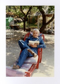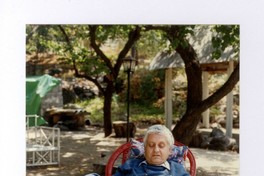 Miguel Arteche leyendo en su casa [fotografía]. Santiago, Chile : [Produción no identificada], Cerca de 1987. 1 fotografía : Color, 8,7 x 12,6 cm. .