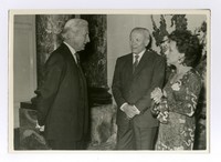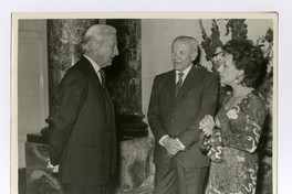 Humberto Díaz-Casanueva, Leonora Kracht y otra persona durante una recepcion diplomática en Nueva York, cerca de 1970.