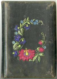 1 cuaderno empastado con tapas duras, color negro, con flores en relieve pintadas con varias tintas.