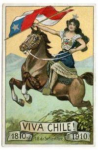 2 tarjetas postales : "Viva Chile" 1810-1910, 18 de septiembre -- "Embarcación".