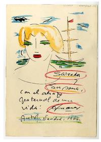 A Salvador y Susana [original de arte] / Andrés Sabella. Antofagasta, Chile : Andrés Sabella, diciembre, 1966. 1 ilustración a color : A varias tintas, 18,5 x 12,8 cm. .