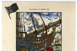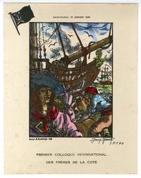 Ilustración impresa de Guy Arnoux, utilizada en la invitación al primer Simposio Internacional de la Hermandad de la Costa. Obsequiada a Salvador Reyes en París por [Jack Grout], miembro de los Frères de la Cote.