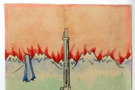 Fuego en la fontera [original de arte] / Julio Aciares. Santiago, Chile : Julio Aciares, 1968. 1 ilustración a color : Tinta china y acuarela, 20,5 x 16,5 cm. .