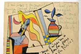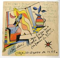 Una lágrima sola basta para sazonar la poesía [original de arte] / Andrés Sabella. Santiago, Chile : Andrés Sabella, 23 agosto de 1952. 1 ilustración a color : A varias tintas, 14 x 14 cm. .
