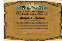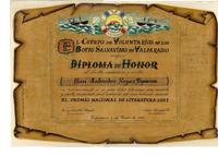 1 diploma ; Archivo del Escritor Biblioteca Nacional, Avenida Libertador Bernardo O'Higgins, Santiago, Chile.