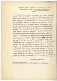 Reseñas : Adiós a la Familia de Braulio Arenas [manuscrito] / Varios autores. 4 reseñas (7 hojas) ; 28 x 19,5 cm. .