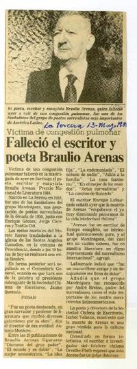 [Artículos sobre la muerte de Braulio Arenas] [artículo] varios autores.