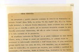 Artículos sobre la producción intelectual venezolana y la entrevista a José Lezama Lima en la revista "Talud", sobre la obra de Saint-John Perse (seudónimo de Marie-René-Alexis Saint Léger) y sobre recuerdos de Rubén Darío aparecido en el N° 20 de los "Cuadernos Universitarios" de Nicaragua.