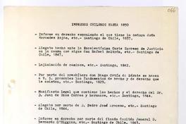 Listados de impresos chilenos entre 1837 hasta 1850 y siglo XIX [manuscrito] Braulio Arenas.