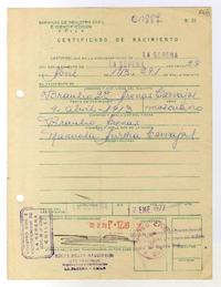 Copia legalizada del certificado de nacimiento de Braulio Arenas y un recuerdo de la Primera Comunión de la Iglesia de San Francisco de La Serena.