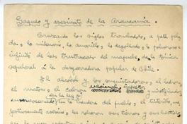 Saqueo y asesinato de la araucanía [manuscrito] / Pablo de Rokha. 13 hojas ; 27 x 22 cm. .