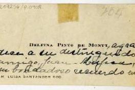 Chile [a] Juan Mujica de la Fuente Tarjeta, 1952 diciembre, [manuscrito] / Delfina Pinto de Montt. 1 tarjeta : 6 x 10 cm. .
