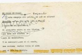 De calle en calle [manuscrito] / Alberto Baeza Flores. 3 hojas ; 27 x 28 cm. .