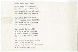 Te lo digo nuevamente [manuscrito] / Alberto Baeza Flores. 1 hoja ; 21 x 14 cm. .