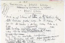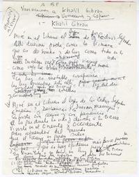 Variaciones a Khalil Gibran : (variaciones y espacios) [manuscrito] / Alberto Baeza Flores. 5 hojas ; 28 x 21 cm. .