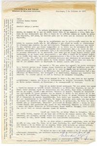 Santiago, Chile [a] Alberto Baeza Flores, Madrid, España Carta, 1967 de febrero 7, [manuscrito] / Salvador Reyes. 1 hoja ; 32,5 x 21,5 cm. .
