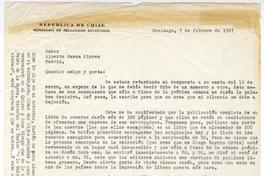 Santiago, Chile [a] Alberto Baeza Flores, Madrid, España Carta, 1967 de febrero 7, [manuscrito] Salvador Reyes.