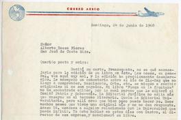 Santiago, Chile [a] Alberto Baeza Flores, Costa Rica Carta, 1968 junio 24, [manuscrito] Salvador Reyes.