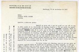 Santiago, Chile [a] Alberto Baeza Flores, Madrid, España Carta, 1966 noviembre 18, [manuscrito] Salvador Reyes.