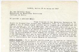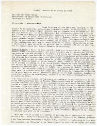 Madrid, España [a] Salvador Reyes, Santiago, Chile Carta, 1967 marzo 28, [manuscrito] Alberto Baeza Flores.