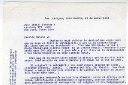 Madrid, España [a] Estela Fuentes A., San José, Costa Rica Carta, 1984 marzo 29, [manuscrito] Alberto Baeza Flores.